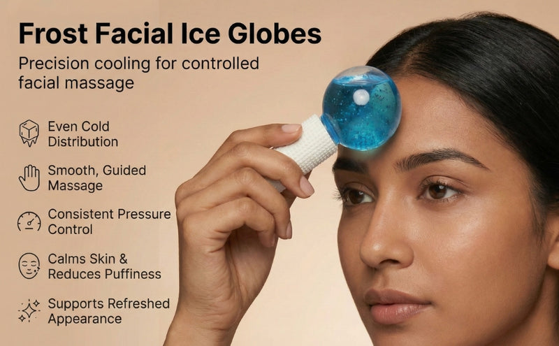 Signaxo Frost Ice Globes are premium facial massage tools designed for depuffing, skin tightening, redness calming, and glow enhancement. These cooling ice globes for face boost circulation, reduce inflammation, and provide a spa-like treatment at home. Suitable for all skin types.