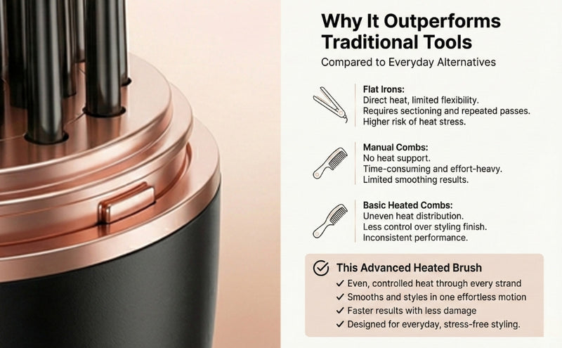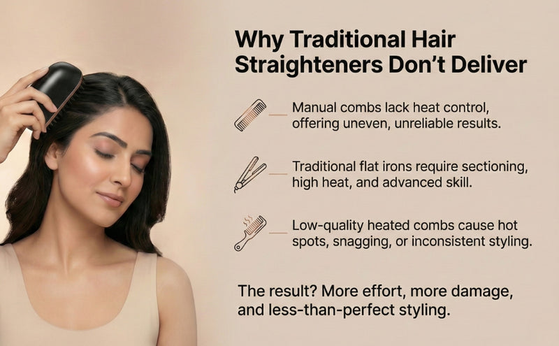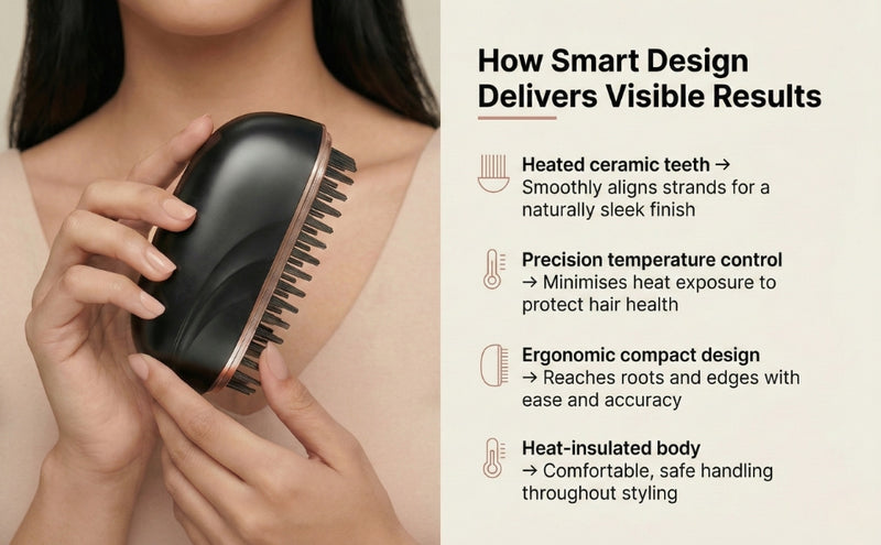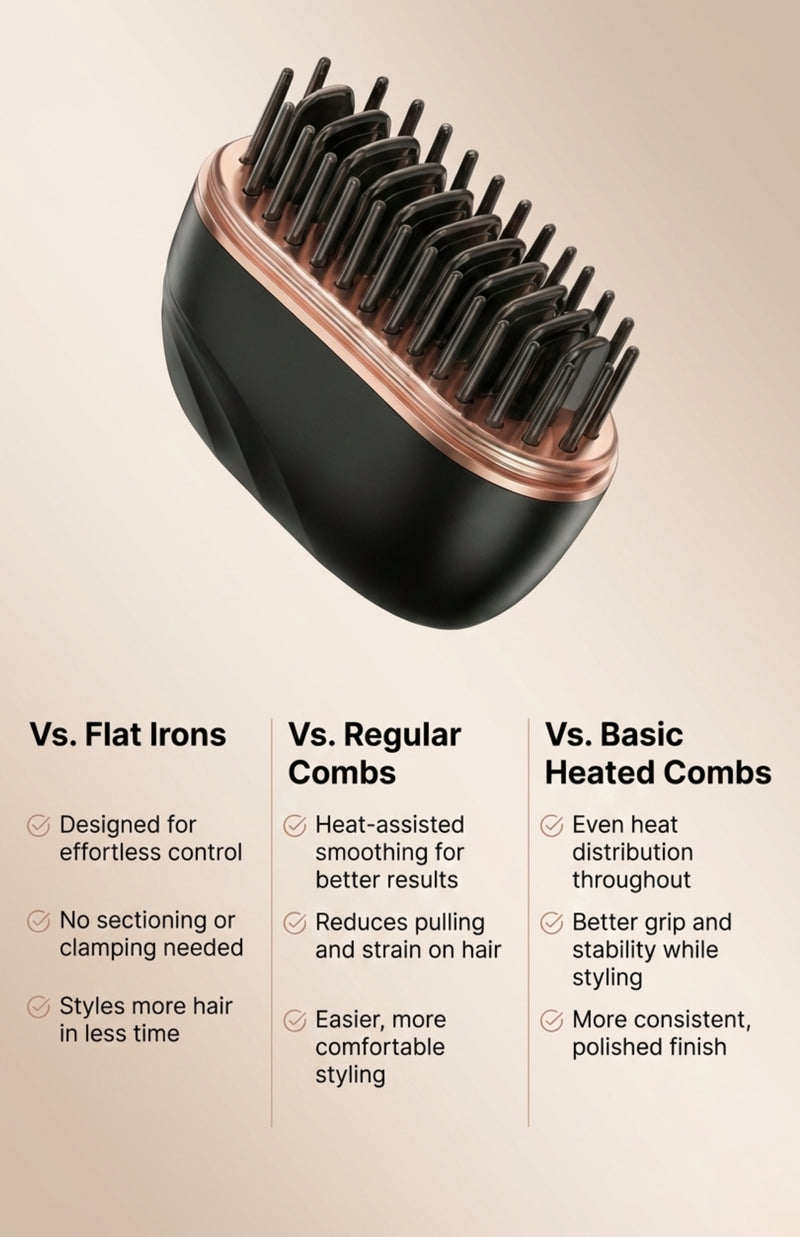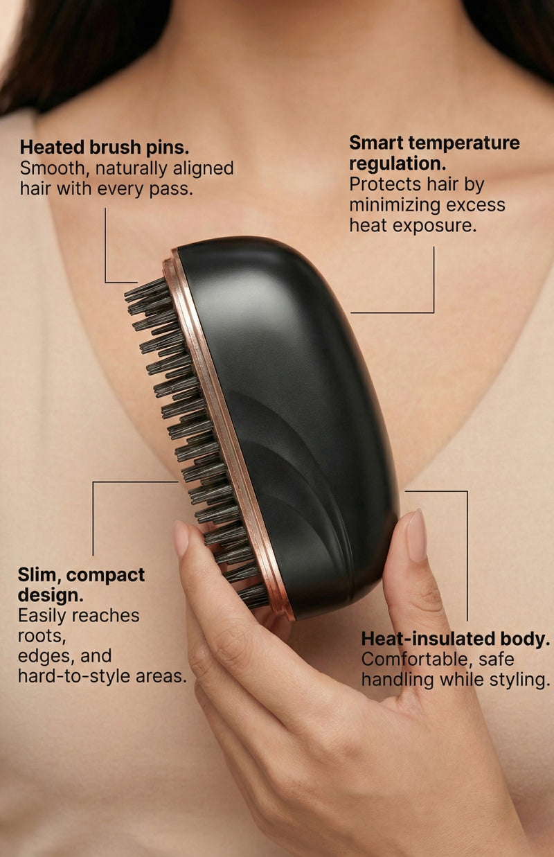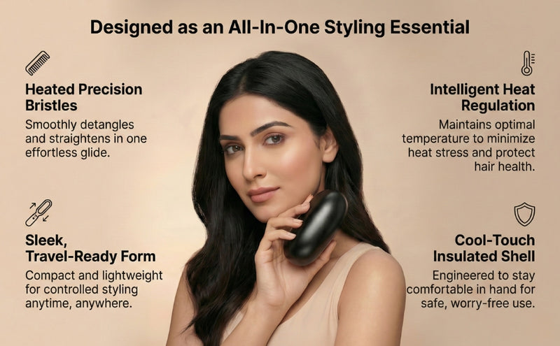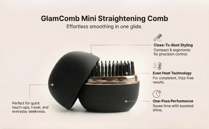 Signaxo GlamComb Mini Hair Straightener Comb is a compact, heat-assisted styling tool designed to smooth, straighten, and align hair effortlessly in a single pass. Combining the control of a comb with evenly distributed heat, it delivers natural-looking straightness while reducing heat stress, snagging, and styling time. Lightweight, travel-friendly, and safe to use near roots, it’s built for precision styling anytime, anywhere.