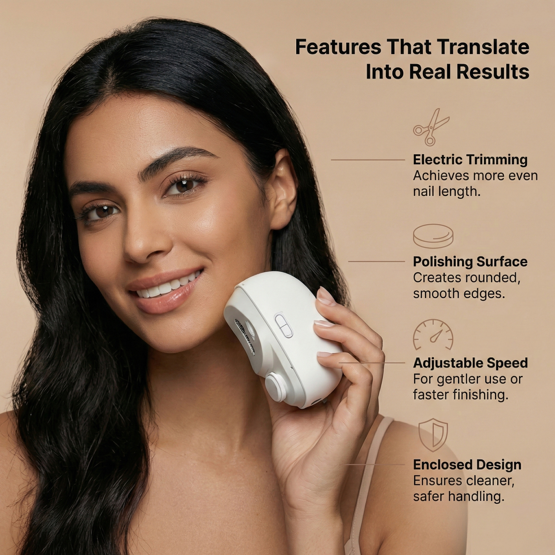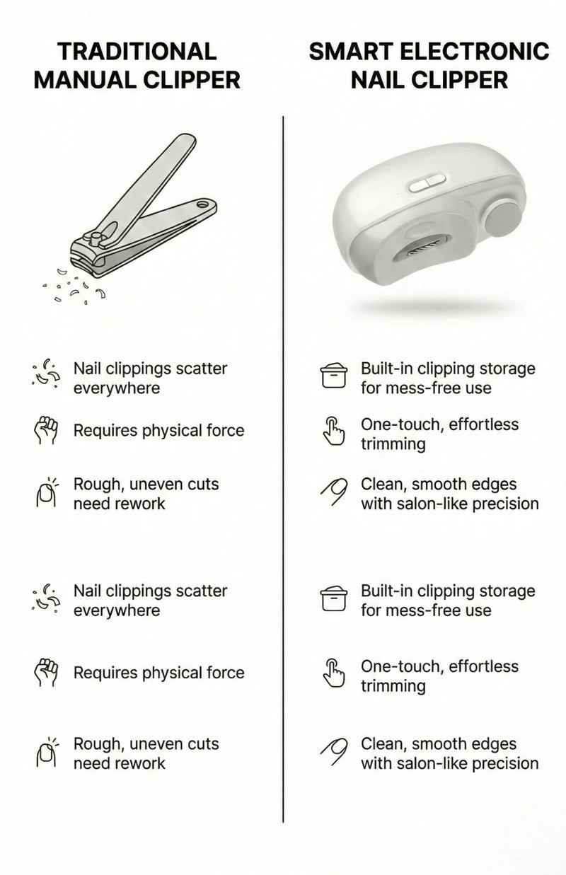 Signaxo NailEase Electric Nail Clipper offers safe, quiet, and automatic nail trimming and filing for all ages. Its rotating blade trims nails smoothly without pressure, making it ideal for kids, adults, and seniors.