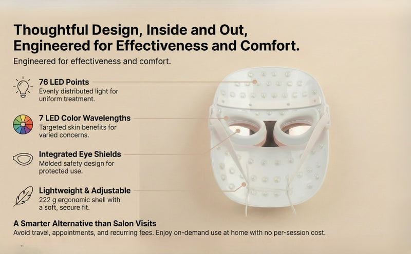 Its comfortable, ergonomic design ensures a secure fit while the advanced technology works to reduce inflammation and promote cell regeneration. Enjoy a comprehensive, spa-like treatment that leaves your complexion looking refreshed and youthful.