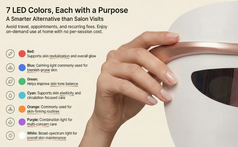 Revitalize your skin with the Signaxo 7-Color LED Light Therapy Face Mask, which uses seven distinct LED wavelengths to address a range of skin concerns from acne to aging. This innovative mask delivers targeted light therapy to stimulate collagen production and enhance skin tone.