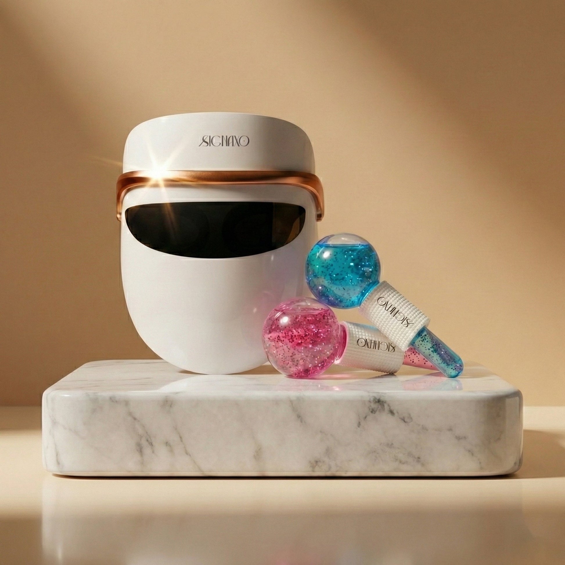 Glow LED Mask targets acne, dullness, and signs of aging, while Frost cools and calms irritated skin. Together, they help restore balance, clarity, and comfort to stressed skin.