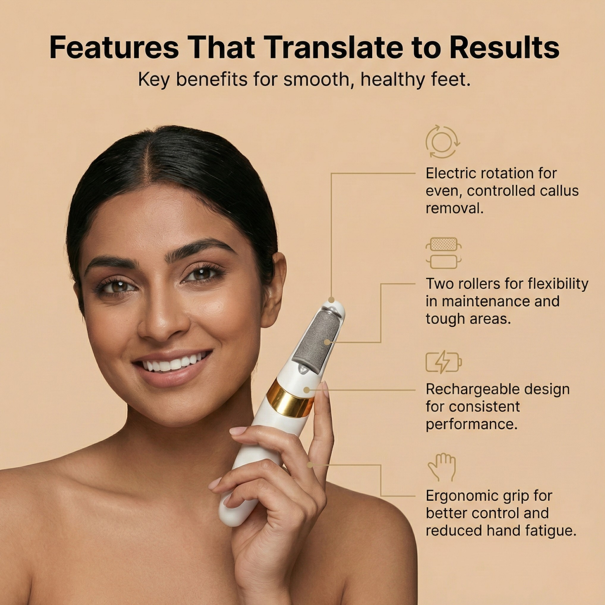 Equipped with dual roller technology, it provides efficient exfoliation while its rechargeable feature ensures continuous performance without the hassle of cords. The ergonomic design makes it easy to maneuver and integrate into your pedicure routine.