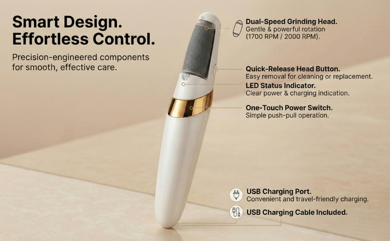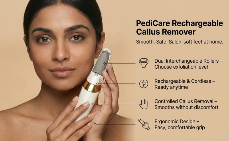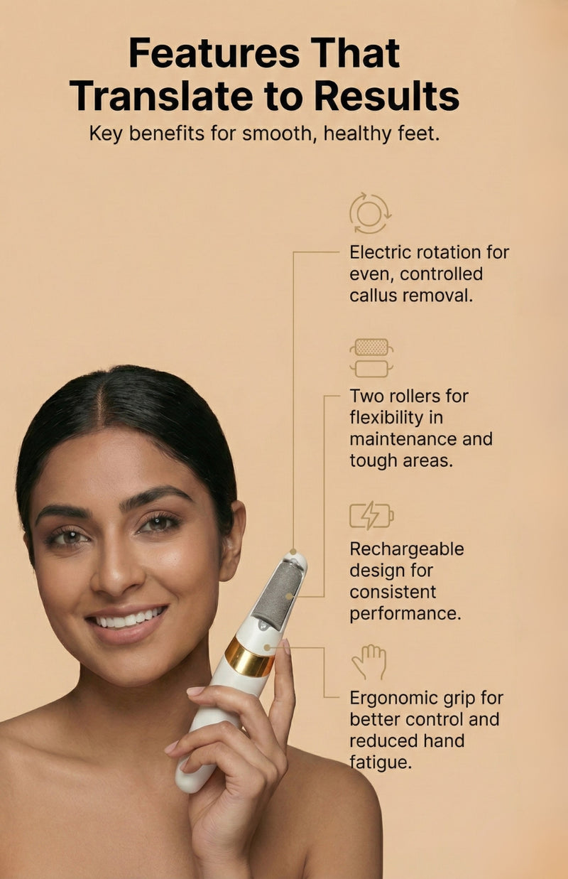 Say goodbye to rough, calloused skin with the Signaxo Rechargeable Callus Remover with Dual Rollers. This innovative device is designed to gently buff away dead skin and calluses, revealing smoother, softer feet.